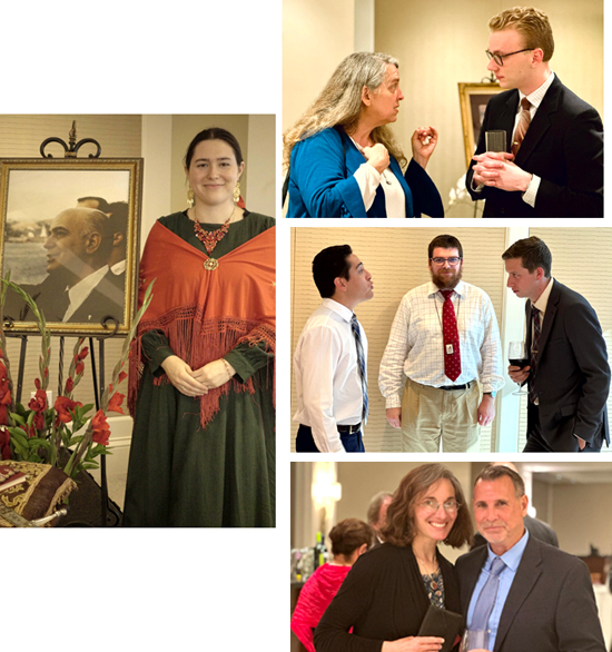 Arriba a la izquierda, la Srta. Salwa Bachar con el Sr. Olivier Martin; arriba a la derecha, la Sra. Renee Lynch, el Sr. Doug Soden y su esposa, la Sra. Ruby; abajo a la izquierda, la señorita Lisa Plummer disfruta del vino y la conversación, abajo a la derecha la señora Ursula Pathak, la señora Charlotte Lear y la señora Romy Martin