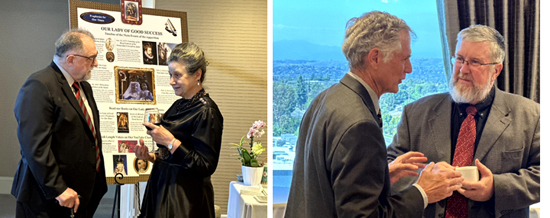 a la izquierda, Judge Michael Kurz y la Dra. Marian Horvat, a la derecha, El Sr. Larry Greenbank conversa con el Dr. David Lozowski