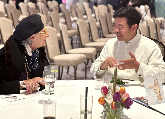 la Sra. Mariola Paini escucha con entusiasmo al Fr. Jacob Hsieh