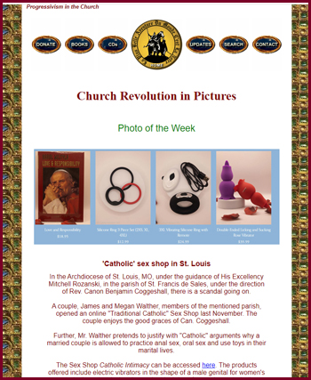 En la Arquidiócesis de St. Louis, MO, bajo la guía del Obispo Mitchell Rozanski, en la Parroquia de St. Francis de Sales, bajo la dirección del Rev. Canon Benjamin Coggeshall del Instituto Christ the King, estalló un escándalo. Una pareja que asiste a esa iglesia tradicionalista hizo un sex shop en línea llamado Catholic Intimacy.
