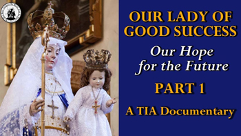 Videos: desde nuestro último evento, el TIA Media Center encabezado por Miss Salwa Bachar con la colaboración del Sr. Michael St. Amand ha producido tres videos sobre Nuestra Señora del Buen Suceso. Esta serie de tres partes se titula Nuestra Señora del Buen Suceso: Nuestra Esperanza para el Futuro. Cada parte dura unos 45 minutos (Parte 1, Parte 2, Parte 3)Los videos presentan entrevistas exclusivas con la Dra. Marian Horvat, así como con Kathy Heckenkamp, el Padre. Isaac Relyea, el Sr. Patricio Padilla y nuestro querido amigo difunto Mons. Patrick Pérez, quien estuvo aquí en nuestro último evento. Estaba sentado justo allí. Que su alma descanse en paz.