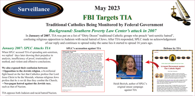 Un agente especial del FBI y denunciante, el Sr. Kyle Seraphin, salió a público y presentó pruebas condenatorias contra la Oficina. Reveló una fotocopia de un informe interno para los agentes del FBI que les ordenaba investigar nueve organizaciones católicas tradicionales bajo la acusación de que eran terroristas radicales y potenciales. Entre esas nueve organizaciones se nombró Tradición en Acción.