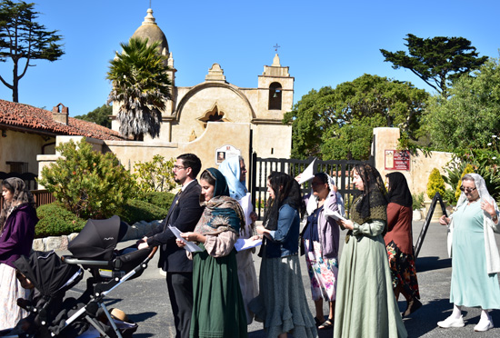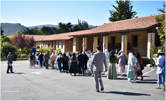 La mañana del 19 de agosto de 2025, el grupo de peregrinos se reunió en el predio del Hotel Mission Ranch, preparados para iniciar la corta marcha de un cuarto de milla cuesta arriba hasta el predio de la Misión Carmel.