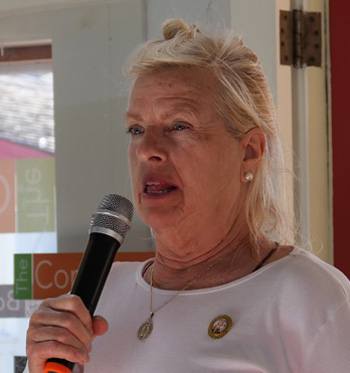 "Para nada", respondió. "Carmel debe ofrecer hospitalidad. Yo prepararé el almuerzo para todos". Y eso fue lo que tan amablemente hizo en el mismo Espacio de Encuentro. Había sándwiches, wraps, platos de fruta y verduras, además de agua y bebidas. Ella y el Sr. Clark Herbert, otro residente de Carmel y miembro de la parroquia de la Misión, se dirigieron al grupo, dándonos la bienvenida y brindándonos información interesante sobre la historia de la parroquia.