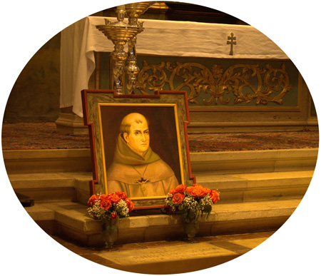 Una placa de piedra marca el lugar donde están enterrados los restos del Santo; la pintura se considera la mejor representación del Santo con su mirada de hierro y su voluntad implacable.