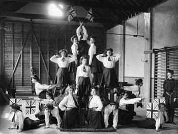 Physical education classes for girls in the early 1900s - already immodest positions