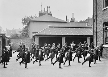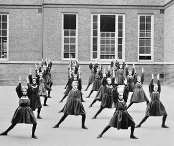 Escuela del convento de Carshalton en 1907, ejercicios de gimnasia