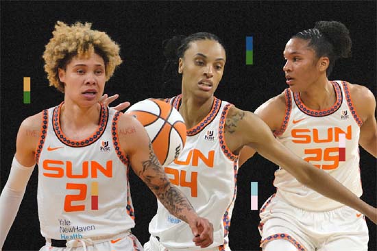 Alyssa, a la derecha, está saliendo con DeWanna, en el centro, quien estaba casada con Candice; Natisha, a la izquierda, está comprometida con Jasmine: esta es la asociación de baloncesto femenino, donde los romances entre compañeras y compañeros de equipo se desarrollan. los rivales de liga son comunes
