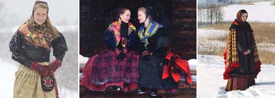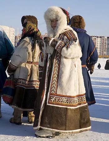 Ropa ártica: pantalones abrigados debajo de las faldas y capas de piel.