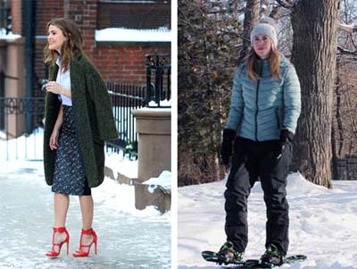 Al decidir qué ponerse hoy en día en el clima frío, la dama se enfrenta a dos tendencias diferentes: o ir a la moda y usar faldas cortas con las piernas desnudas, dependiendo de la calefacción interior, o abrigarse con gruesos pantalones para la nieve y abrigos acolchados de plástico sin ningún tipo de elegancia femenina para ellas.