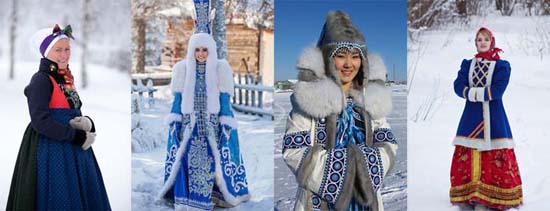 Ropa de invierno tradicional para mujeres en los países europeos.