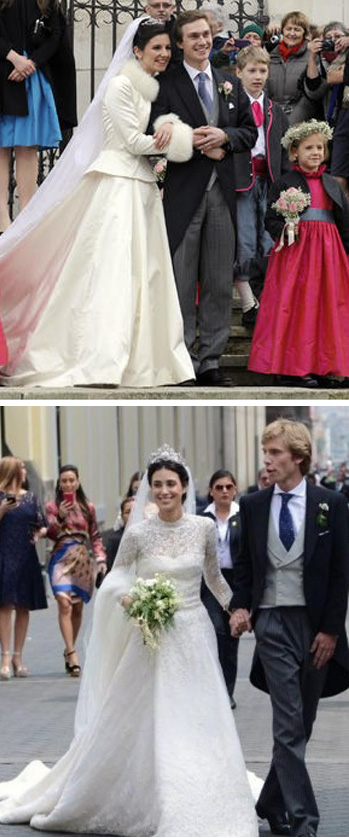 Arriba: El archiduque Christoph von Habsbourg se casa con la archiduquesa Adelaide Drape-Frisch (29 de diciembre de 2012); Abajo: El príncipe Friedrich von Hannover se casa con Alessandra de Osma (16 de marzo de 2018)