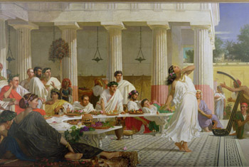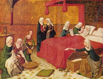 Los primeros cristianos rechazaban los fastuosos banquetes de cumpleaños, como el de Herodes arriba, & veían el verdadero cumpleaños de un Santo como el día de su muerte, cuando entraba en el Reino Eterno