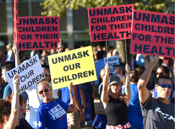 Por orden de los CDC, el uso de mascarillas era obligatorio para todos los estudiantes de 2 años o más, independientemente de su estado de vacunación. Esto se proclamó a pesar de que la propia Organización Mundial de la Salud (OMS) no recomendó el uso de mascarillas para niños de 5 años o menos, dado que tienen un bajo riesgo de infección, alegando que "no les conviene en general" y que, de todos modos, probablemente no podrían usarlas correctamente (p. 212).