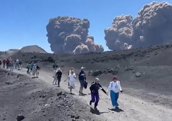 Turistas obligados a huir de las nubes explosivas de ceniza volcánica