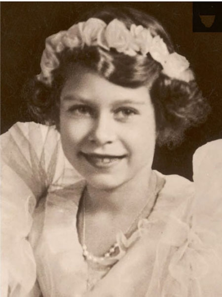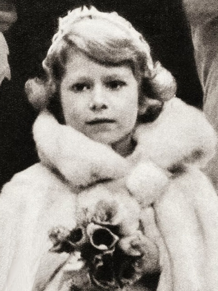 Encima, vemos a la princesa Isabel, la futura reina de Inglaterra, como dama de honor en la boda de Lady May Cambridge en 1931, cuando tenía 5 años. Estaba claramente tranquila y serena, consciente de su propia dignidad y del papel serio que se le asignó en la vida. Con este enfoque se estaba preparando para aceptar la vida de una noble inglesa; por lo tanto, estaba preparada para tomar el camino inesperado de convertirse en reina, que fue llamada a caminar después de que su tío Eduardo VIII abdicó y su padre Jorge VI murió.
