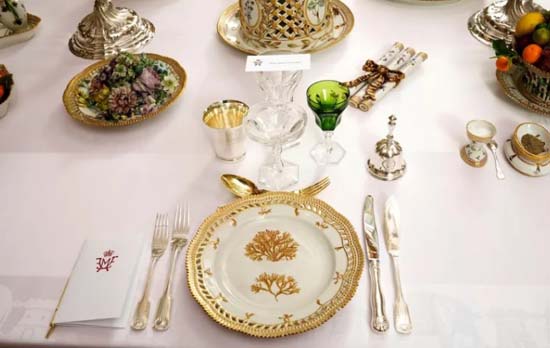 Finas piezas del servicio de mesa Flora Danica. El diseño presenta plantas de tamaño natural pintadas a mano que se encuentran en Dinamarca, tomadas de la Flora Danica, un libro de referencia especial compilado por el botánico Georg Christian Oeder en 1752. El juego de porcelana Flora Danica originalmente constaba de 1.800 piezas, hoy solo quedan 1.500 de este servicio de cena de valor incalculable.