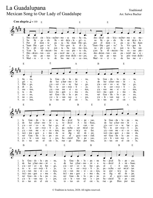 La Guadalupana aquí es interpretada por un mariachi desconocido. La canción ha inspirado muchas y diversas letras; a continuación se encuentran las letras cantadas en la grabación, así como dos versos adicionales (8 y 9), que no se cantan aquí.