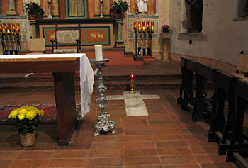 Hay un cartel con una inscripción que da una breve historia del Padre Luis Jayme, el Protomártir de California. (5) Pero su nombre es relativamente desconocido, su intercesión rara vez invocada. Sus restos están sepultados en la Basílica de San Diego, pero la mayoría de los católicos pasan por este lugar sagrado sin reconocer su nombre o importancia.