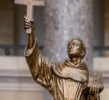 La estatua en San Juan, Mallorca, sobre el ayuntamiento, honra al mártir californiano
