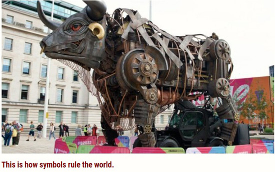 Y ahora este toro, un representante de Baal y la élite que se identifica con él, está permanentemente en exhibición en Birmingham.