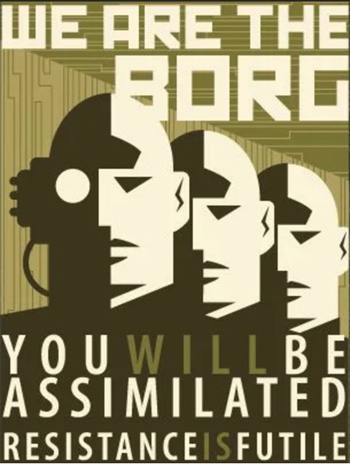 "Somos Borg. La resistencia es inútil. Serás asimilado. Tu vida como ha sido, ha terminado. De ahora en adelante, nos servirás ".