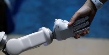 Un mundo sin humanos reales. Un mundo donde todo el mundo está potenciado con (y en el caso de la clase baja, controlado por) la tecnología. Un mundo sin creencia en un poder superior a los propios programadores e inventores. (2) Un mundo donde los robots hacen la mayor parte del trabajo, la inteligencia artificial toma la mayoría de las decisiones y los humanos mejorados ejecutan la programación.