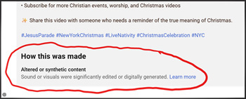 Un caso concreto: hace dos semanas (alrededor del 19 de diciembre de 2025), se subieron a YouTube videos de un “Desfile de Jesús” en Nueva York (ver aquí y aquí), que obtuvieron millones de visualizaciones. A primera vista, los videos dan la apariencia de ser un evento real, similar al Desfile del Día de Acción de Gracias de Macy’s. Sin embargo, al examinarlos con mayor detenimiento, se descubre una realidad inquietante: los videos fueron generados por IA.