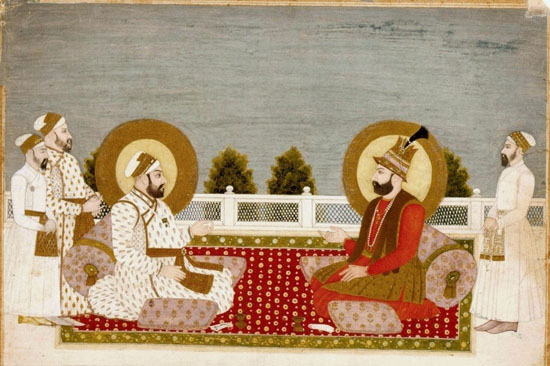 El astuto Nadir Shah propone un intercambio de turbantes, a la izquierda