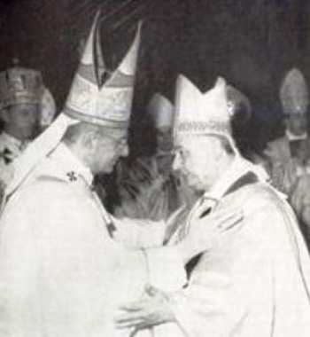 Pablo VI saluda cordialmente a Arch. Bugnini