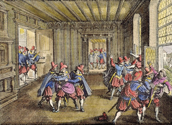 La defenestración de Praga - 1618 - los protestantes arrojaron por la ventana a los funcionarios imperiales católicos