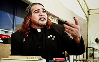 Los sacerdotes ahora se consideran iguales a los laicos; arriba, sacerdotes paulistas en unas vacaciones en bote; abajo, cura del rock popular mexicano 'El Gofo'