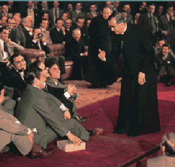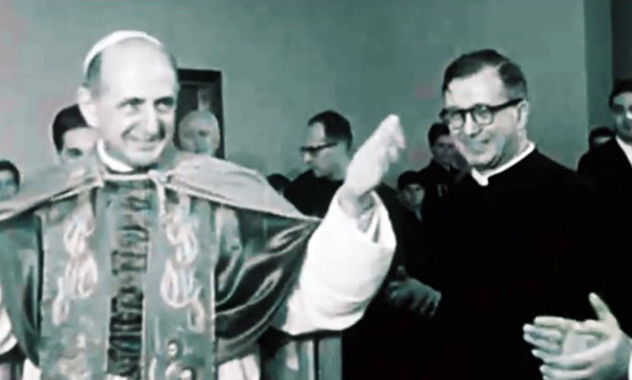 Monseñor Escrivá enseñando a los laicos que tienen vocaciones iguales, abajo, con su buen amigo protector Pablo VI