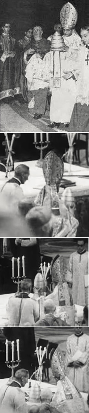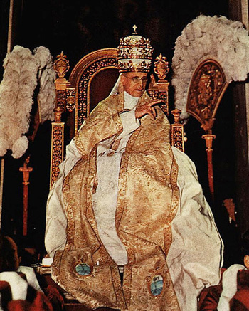 Porque aunque no abolió la ceremonia de coronación –de hecho, la mantuvo específicamente (10)–, daba la impresión de que renunciaba a su soberanía no sólo sobre la Iglesia sino también sobre los reyes y reinas terrenales; mientras que al mismo tiempo permitía que los progresistas en el Concilio que desafiaron la supremacía papal creyeran que sus ideas subversivas algún día serían legítimamente aprobadas por la Iglesia.