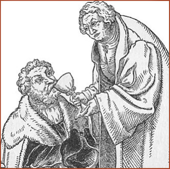 La noción de Ratzinger sobre la Eucaristía es luterana - Arriba, Lutero dando la comunión a Juan el Firme