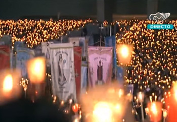Dos familias de almas: Arriba, los peregrinos de Fátima procesionan en el lugar de la aparición; abajo jóvenes mundanos entregándose a la mala moda y la inmoralidad
