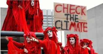 Activistas del calentamiento global del grupo Extinction Rebellion protestan en Londres, Inglaterra, el 25 de abril de 2019