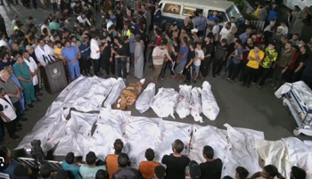 Cadáveres se alinean frente a un hospital de Gaza tras un ataque aéreo israelí