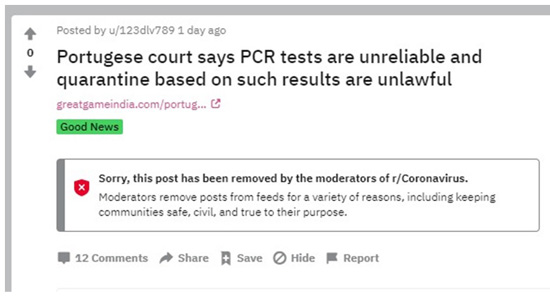 Un tribunal de apelaciones en Portugal ha dictaminado que el proceso de PCR no es una prueba confiable para Sars-Cov-2 y, por lo tanto, cualquier cuarentena impuesta basada en esos resultados de la prueba es ilegal .