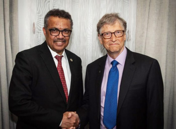 Bill Gates con Tedros Ghebreyesus, jefe de la OMS - Gates es uno de sus grandes donantes