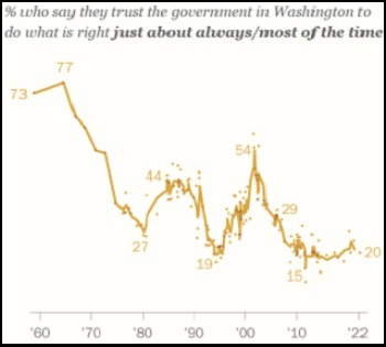 Una nube oscura de desprestigio se cierne sobre todas las instituciones oficiales del mundo desarrollado. Afecta más a los gobiernos, pero también a todas las instituciones que cooperaron con ellos durante tres años y medio, incluidos los medios de comunicación, las corporaciones más grandes y las empresas de tecnología. La nube cubre la mayor parte de la academia, la medicina y los expertos en general.