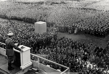 Por ejemplo, podemos señalar el frenesí de Hitler hablando ante una multitud hipnotizada cuyo delirio crece a medida que sus palabras añaden fuego a su estado frenético.