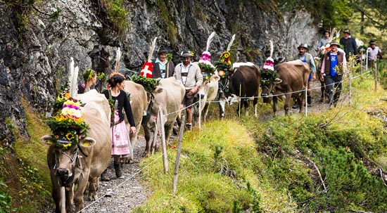 A partir del 8 de septiembre y hasta mediados de octubre, los pueblos alemanes en los Alpes tienen procesiones para llevar el ganado y las ovejas a casa desde sus pastos de montaña. Estas procesiones "hacia abajo" se conocen como Almatrieb o Viehscheid (en Allgäu).