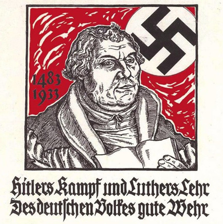 Adjunto a este correo electrónico hay un escaneo de un cartel de propaganda nazi de 1933. dice: "La lucha de Hitler y la buena defensa del pueblo alemán de Lutero".