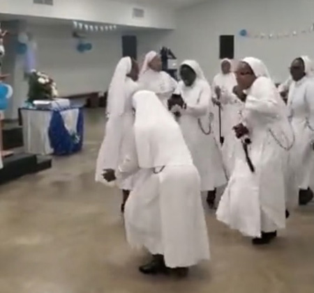 Las monjas que se muestran a continuación supuestamente están aprendiendo a "socializar" con la congregación antes de profesar sus votos solemnes. Este aprendizaje de la danza es supuestamente requerido por su formación como disciplina, entre muchas otras. Estos y otros datos se pueden leer en este reportaje de Eagle Online.