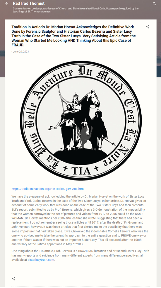 Aquí [captura de pantalla abajo] está el reconocimiento, la reivindicación y un enfoque de trabajo en equipo que es la mejor manera de llamar la atención necesaria sobre esta parodia perpetrada por papas conciliares diabólicos y sus secuaces.