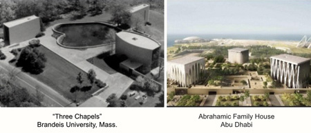 Este concepto surgió de los judíos en Estados Unidos en la década de 1950. En la Universidad Brandeis, laica y dirigida por judíos, en la década de 1950 se construyeron en un mismo terreno las “Tres Capillas” de edificios casi idénticos: una sinagoga judía, una capilla protestante y una capilla católica. La construcción de la universidad comenzó en 1948 y el cardenal católico liberal Francis Spellman ayudó a recaudar fondos para esta universidad judía.