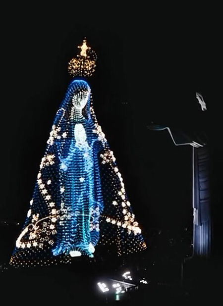 El domingo 12 de mayo, Día de las Madres, los católicos de Río de Janeiro tuvieron la brillante idea de traer un espectáculo de luces que representaba a Nuestra Señora Aparecida, Patrona de Brasil, para que surcara el cielo nocturno y se encontrara con la famosa estatua del Cristo Redentor.
