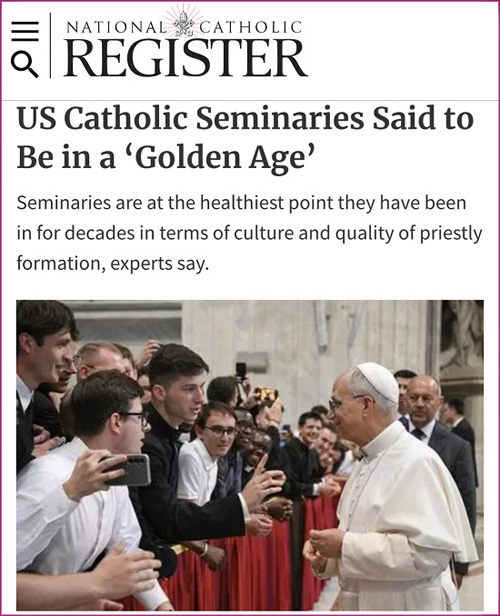 Mientras tanto, los medios católicos en EE.UU. han decidido reetiquetar el declive como renacimiento. Un artículo esta semana en el National Catholic Register anuncia: “Los seminarios católicos de EE.UU. se dicen en una ‘Edad Dorada’”.