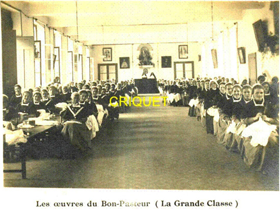 La fotografía adjunta no tiene fecha ni se indica la ubicación. Creo que es el Convento del Buen Pastor en Angers, y creo que la fecha podría ser de principios de la década de 1950 o finales de la de 1940, antes de que se modernizaran los uniformes en Francia.